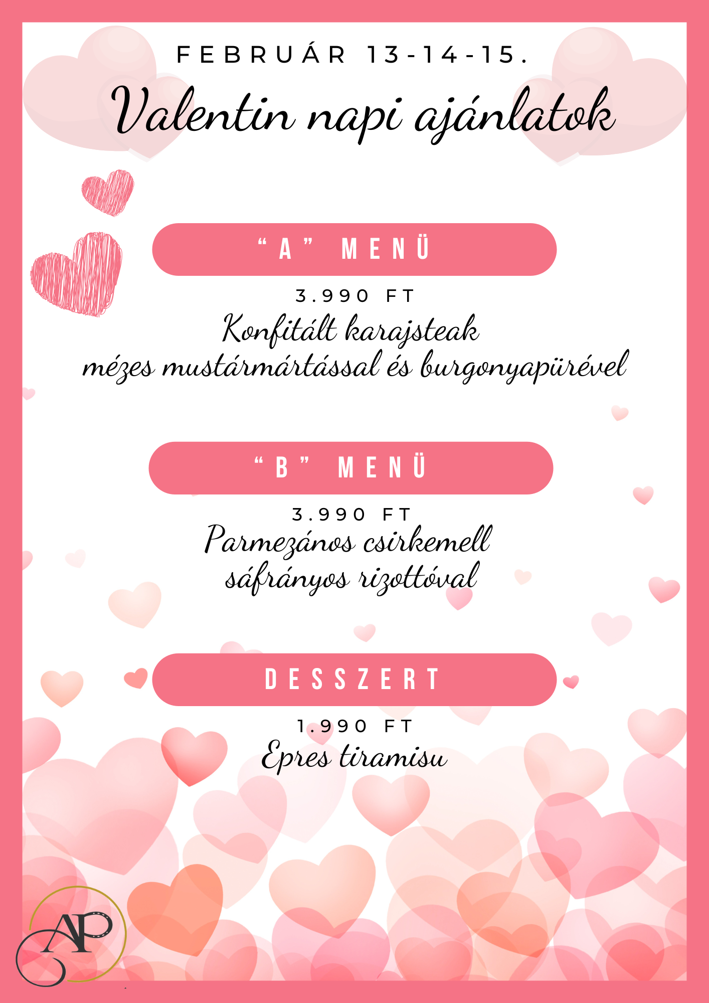 Szervezze meg a randevút éttermünkben vagy kérje házhoz a szerelmi fogásokat.